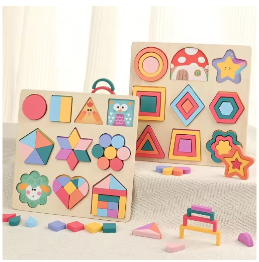 الأطفال DIY بها بنفسك شكل هندسي اللون مطابقة لعبة لعب خشبية ثلاثية الأبعاد بازل قطع كتلة لصبي فتاة عيد الميلاد هدية عيد ميلاد