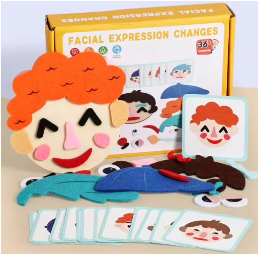 لعبة مونتيسوري لتعبير الوجه للأطفال ألعاب التغيير العاطفي مع 9 قطع بطاقات ألعاب تعليمية لمرحلة ما قبل المدرسة